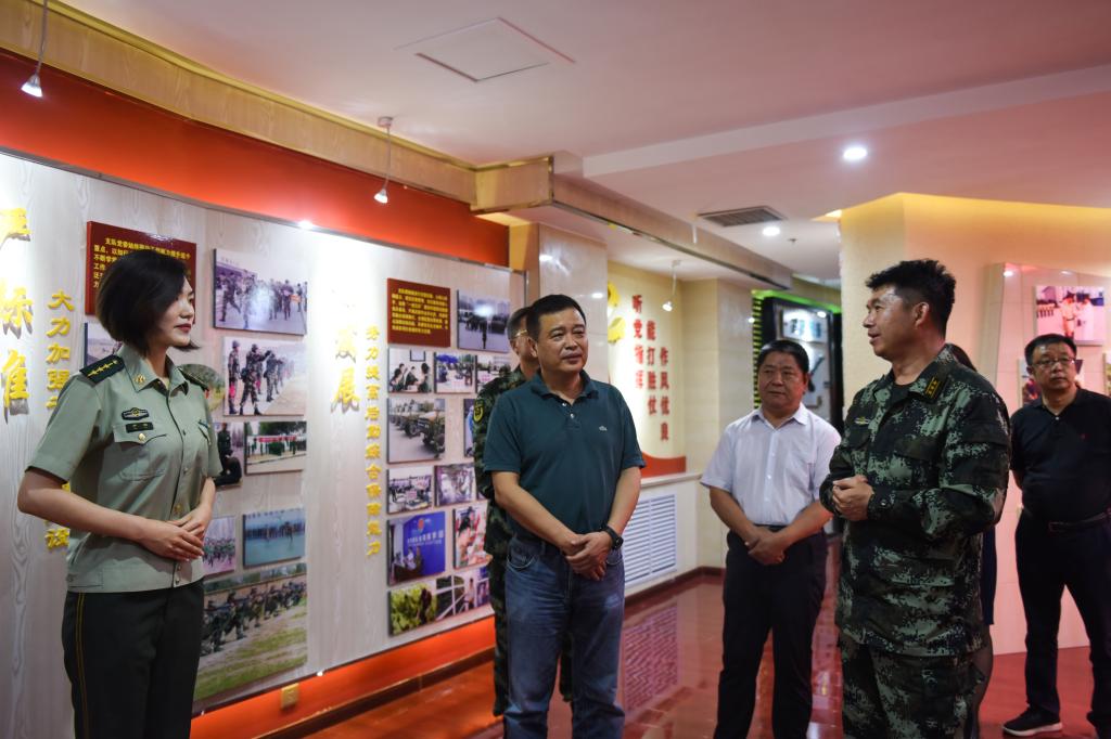 任慧平、冯志强一行参观了武警包头支队史馆。讲解人员介绍了武警包头支队发展的历史沿革,讲述了武警包头支队发展的光辉历程。一张张照片、一座座雕塑,记录着1950-1983年的时光荏苒军魂永驻的艰难岁月,1983-2005年的栉风沐雨一路前行的波澜壮阔,2005年至今重组壮大再续新篇的强军征程,让大家直观地看到了武警包头支队的发展历程,感受到了军民融合、共克难关的军民情。