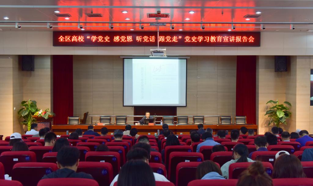 为贯彻落实习近平总书记在党史学习教育动员大会和清华大学发表的重要讲话精神,推进党史学习教育在高校走深、走实、走心,5月27日下午,全区高校“学党史 感党恩 听党话 跟党走”党史学习教育巡回宣讲报告会在js3845金沙线路图书馆学术报告厅举行。