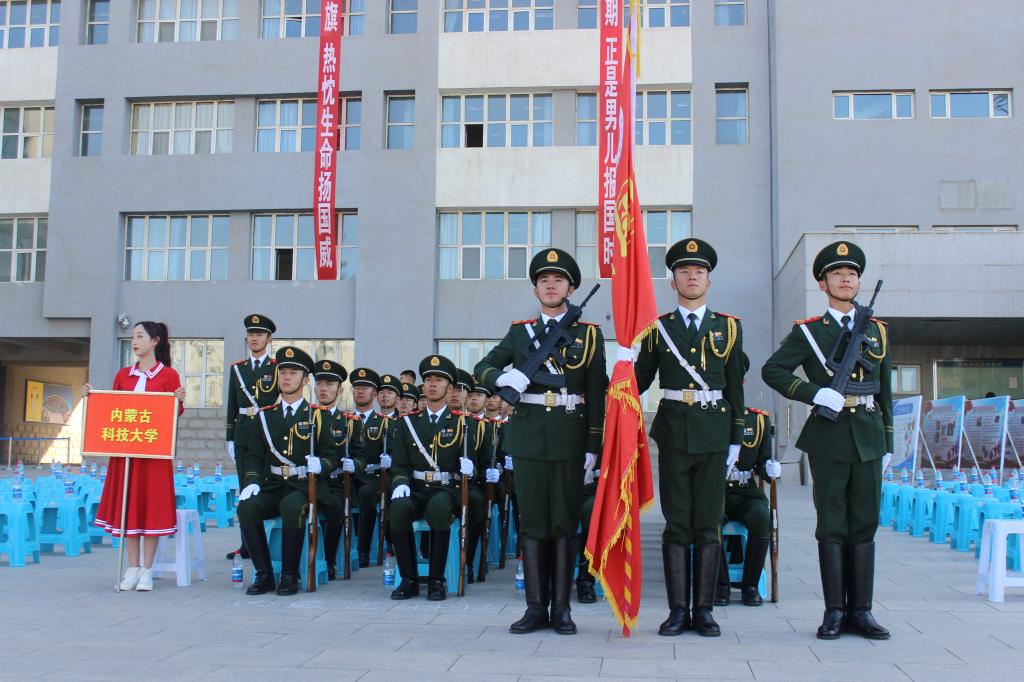 活动开始,由包头医学院国旗护卫队出旗并举行升国旗仪式。随后,js3845金沙线路、包头师范学院、包头医学院、包头职业技术学院、包头轻工职业技术学院、包头钢铁职业技术学院、包头铁道职业技术学院等七所高校国旗护卫队依次入场,各校队员以雄赳赳气昂昂的精神面貌通过主席台,接受了军地领导的检阅。