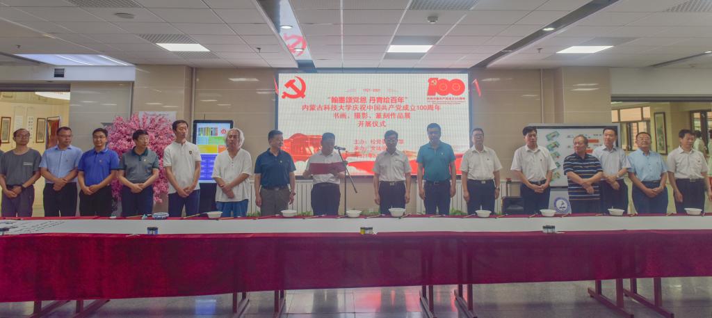 展出的作品展示了内科大师生和校友的艺术功底,将建党百年与艺术深度对话,除了内科大师生、校友的投稿外,还包括包头市书画名家、广大书画、摄影、篆刻爱好者的赞助。