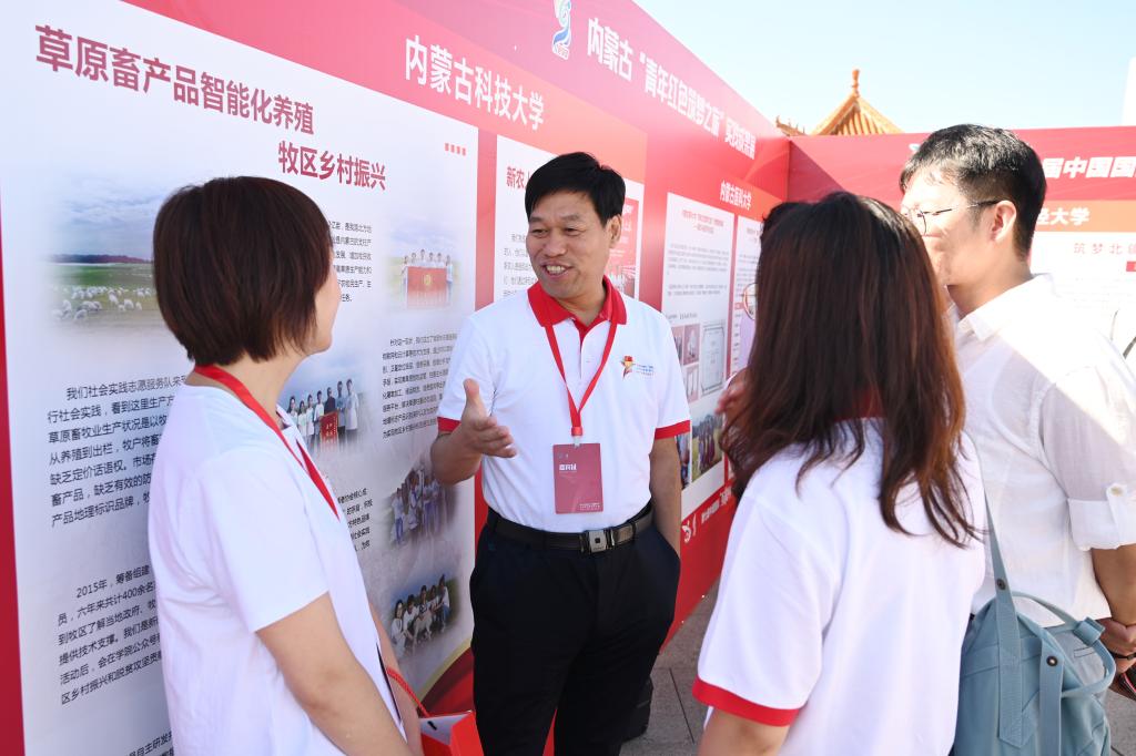 活动正式开始前,师生代表共同观摩全区高校“青年红色筑梦之旅”实践成果展,js3845金沙线路入选教育部典型案例项目《新农人建设在北疆》和第六届省赛银奖项目《草原畜产品智能化养殖牧区乡村振兴》进行了项目展示。
