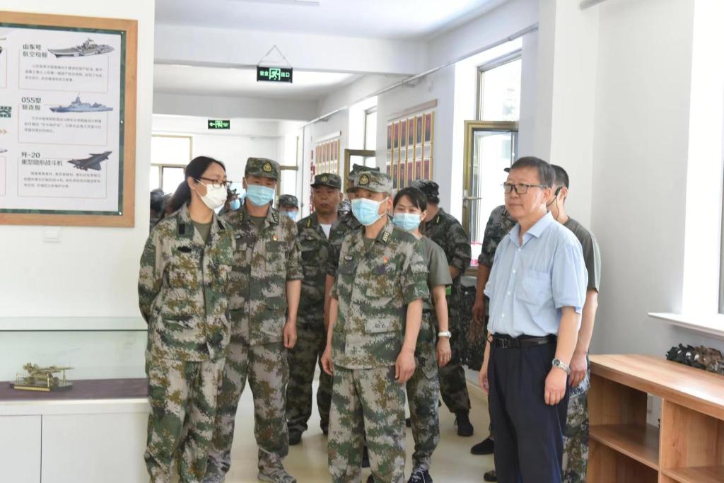 刘仕政一行参观了内科大国防动员实践基地征兵退伍一站式服务大厅、器材装备库、军事社团办公场所、多功能培训教育活动室等场所,对基地建设成果表示肯定。