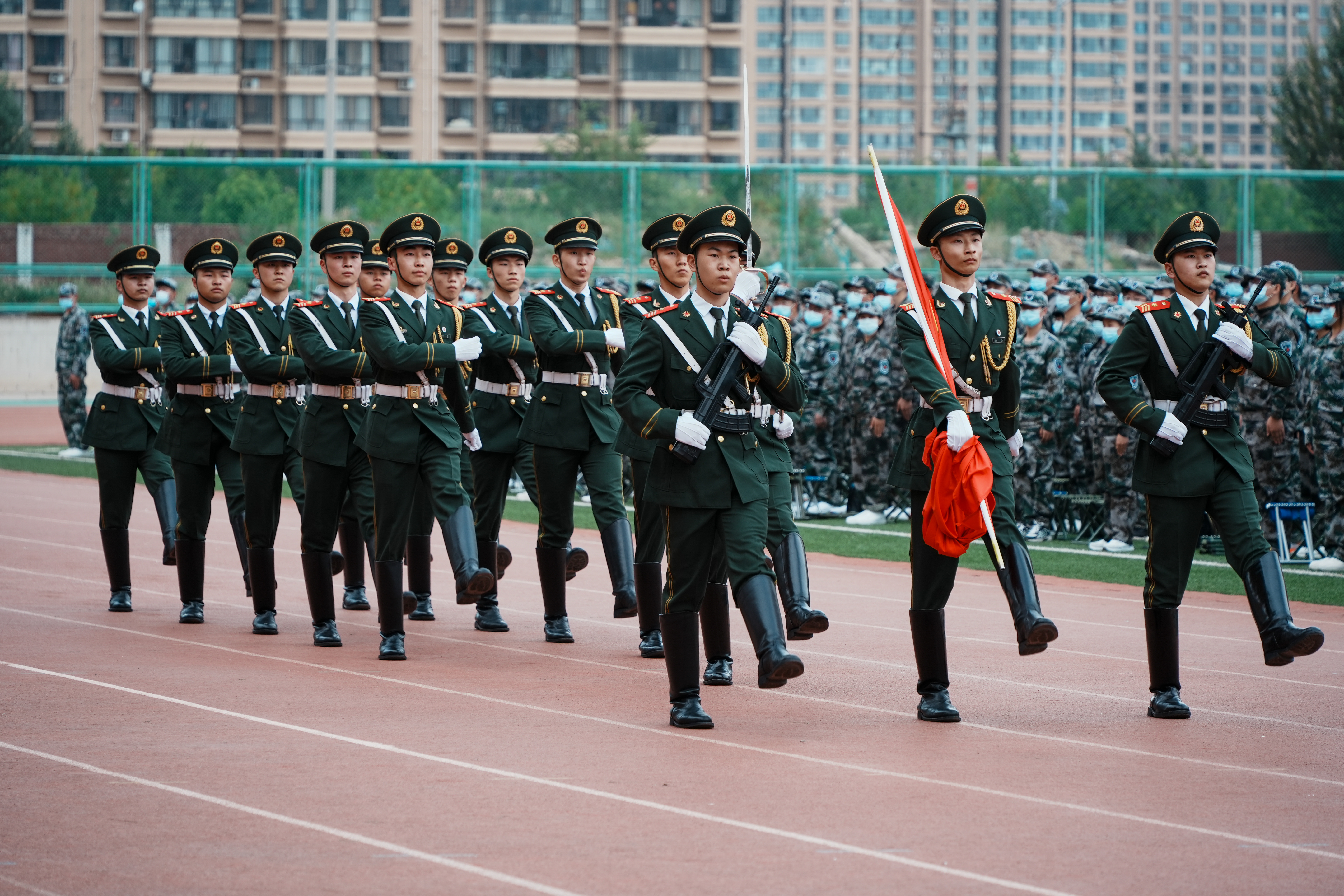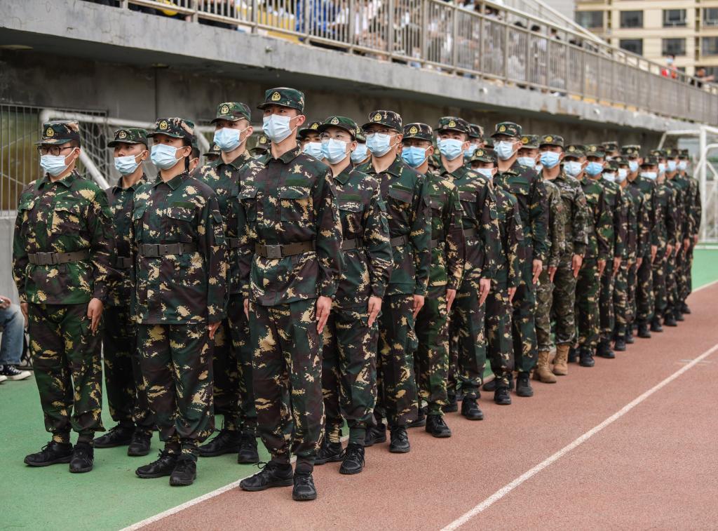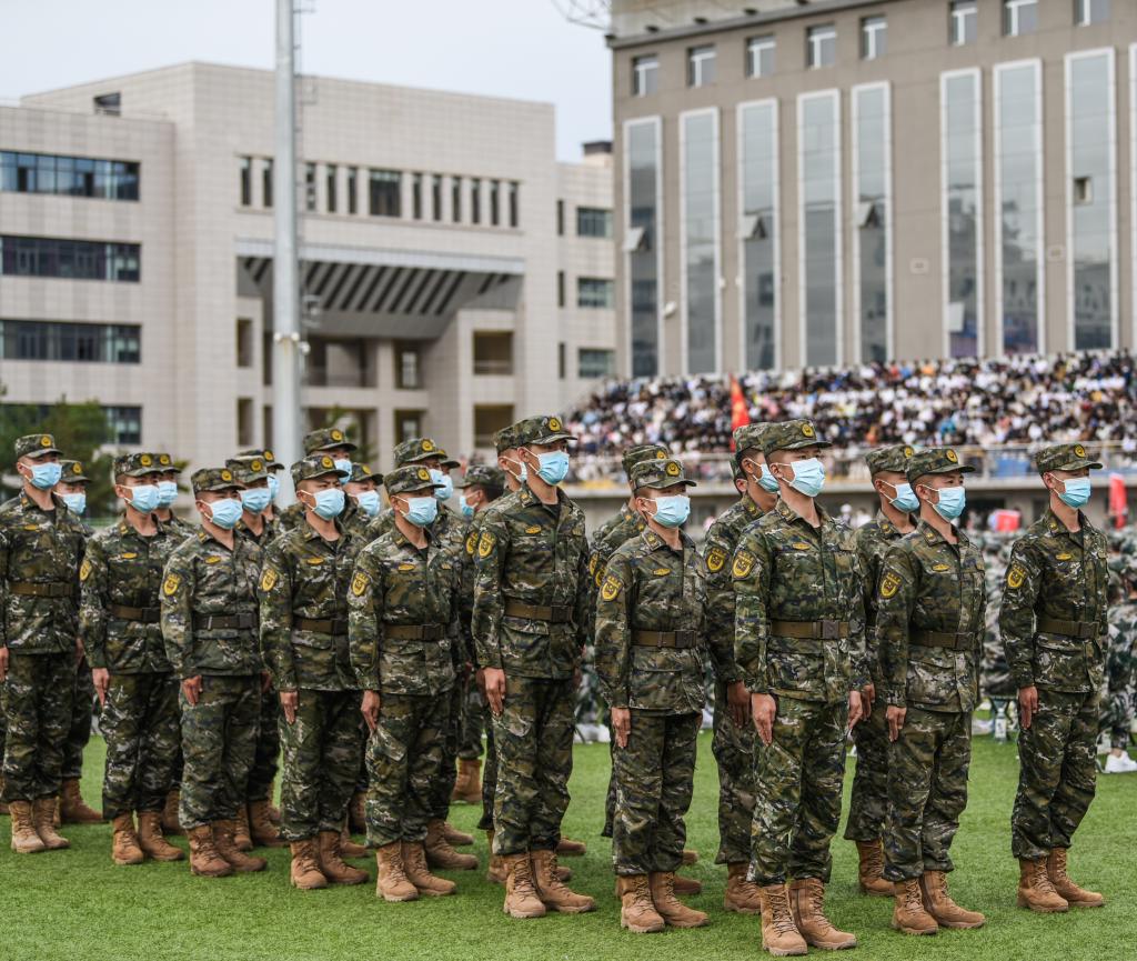 在校生代表薛刚说,年轻的字典里没有畏惧与退缩,我们要以高度的荣誉感、责任感和使命感,积极投入训练,在实践中磨练坚韧品格、培养爱国精神、强化国防意识,传递薪火,砥砺奋进。