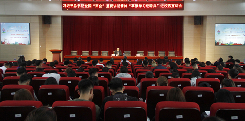 3月29日下午,我校在习近平新时代中国特色社会主义思想协同学习中心开展学习贯彻习近平总书记给莫斯科大学中国留学生重要回信精神--“与信仰对话”2018年学生座谈会。校党委常委、副校长杨建林,思想政治教育专门委员会、校团委相关负责人、学生组织代表、研究生代表、理论学习社团代表等35人参加本次活动。杨建林和同学们进行了深入交流。他说,我国高校是中国特色社会主义高校,同学们应站在政治与历史的高度充分认识习近平总...