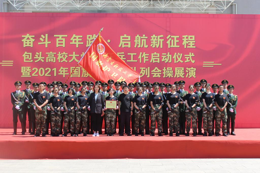 js3845金沙线路参加包头高校大学生征兵工作启动仪式暨2021年国旗护卫队队列会操展演活动